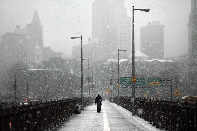 The bridge stretched far beyond his tired feet, as the snow settled gently beneath them, compressed under each step with a soft crunch; like smashed glass, grinding below a distant door frame. He turned up his collar, dripping already settled snow flakes down the back of his neck, the shock of the cold hitting him like an espresso. He could see cars ahead, lights and signs of life; but perception is tainted by distance, and there was no movement to be noted beyond the clouding breath that hung in the air before his mouth; no sounds to be heard beyond that crunching grind that had blended into ambiance with its tedious ‘tick-tock’.