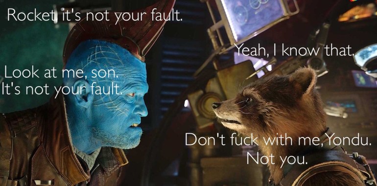 The general morality of the entire film is so painfully ham-fisted that I thought I was going to start throwing up strips of bacon somewhere between the painfully transparent line set ups: (Peter: I finally found my family. Gamora: I thought we were your family.), to the unrepentantly inane character bonding of, say, Yondu and Rocket, when they basically try to recreate some Good Will Hunting nonsense with a (paraphrase) ‘You’re just being a dick to everyone all of the time because deep down you’re scared of being alone, and I know, because we’re the same, man. We’re the same.’ scene, and cue the tearful hugs and for the love of science, none of that drivel makes up for two characters who have consistently been mercilessly unkind for such vast periods of time, to a point where Rocket does a Tony-Stark-makes-Ultron and single handily drives all of the conflict in the movie, simply by being a selfish dick in the opening scene.