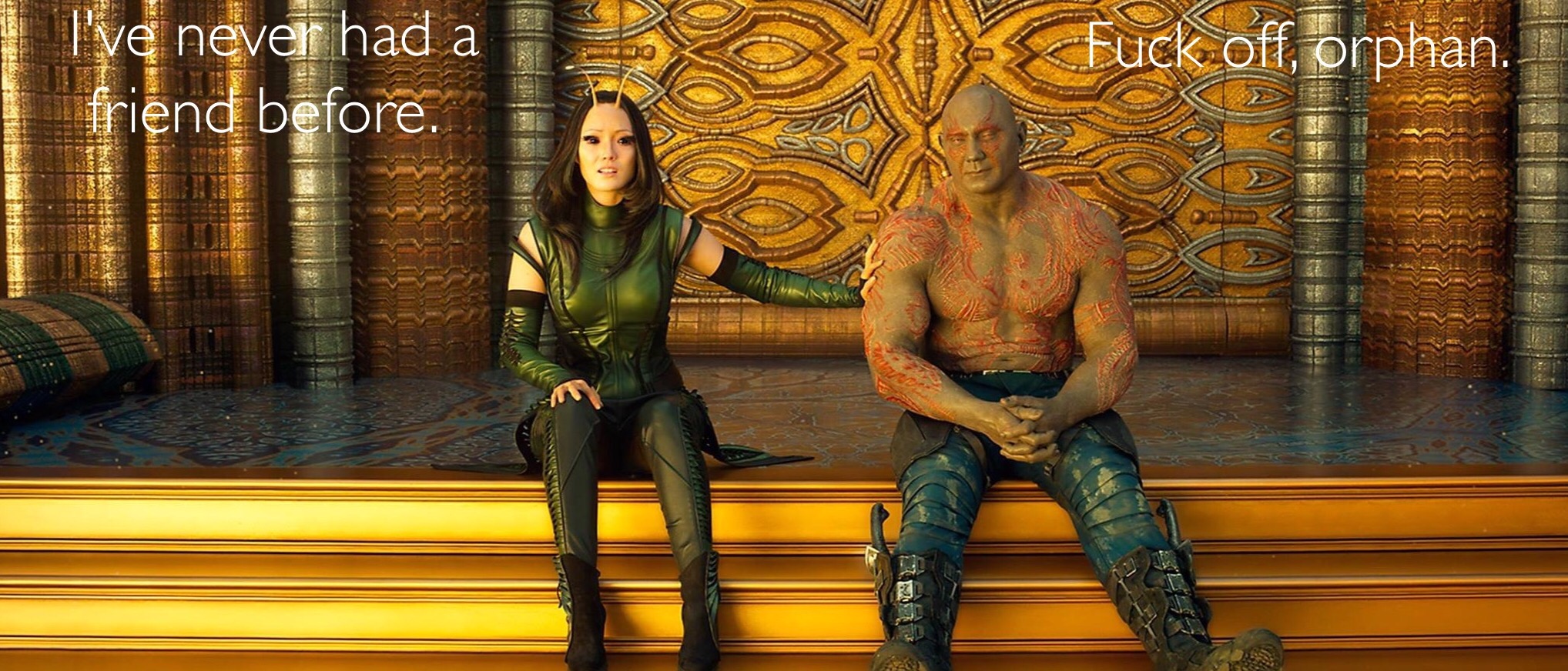 So, to put it bluntly: Guardians of The Galaxy Vol. 2 is what happens when a film maker listens too closely to their least analytical audience members. The writers popped over to a thirteen year old’s tumblr fan page, and built an entire movie out of the four or five recurring GIFs and memes that they found posted and reposted ad nauseam.