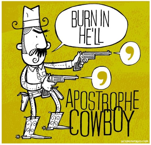 Poor little apostrophe. He knows his place, and more importantly, he knows when he’s not in it. Some, or all, will say that it isn’t really too important, and that as long as you get the gist of what is meant, then the grammatical semantics of the written word can probably fall by the wayside. However, if the boat of proper grammar truly is sinking, then I would rather let the weight of a million neglected semi-colons and brackets pull me down to the dreary depths of the abyss, than abandon ship and take refuge upon the misplaced and miserable apostrophe that hangs lifeless between the O and the S in the word: photo’s, or cling to safety upon the second f in the word of.